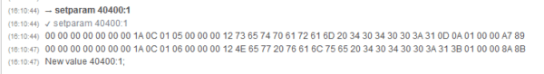 The device will then respond if the command was accepted. If you wish to verify this manually, simply run the "getparam" command again, and it will display the new value: