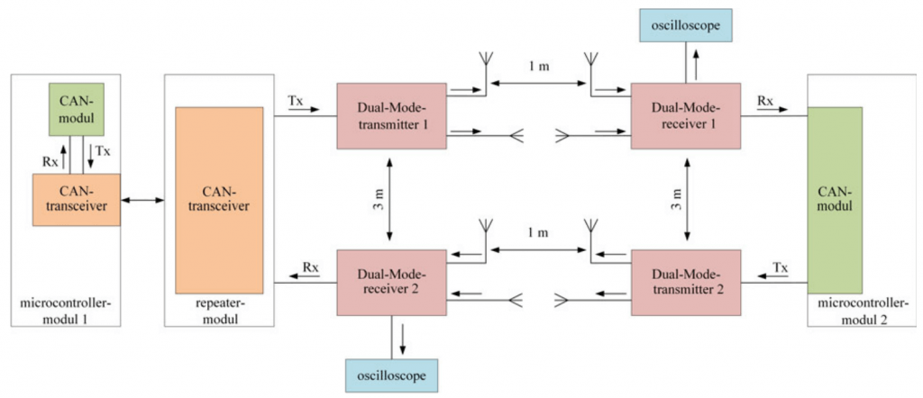 El CAN inalámbrico basado en radio de doble modo permite que los participantes CAN se integren inalámbricamente en una red CAN, aumentando la seguridad y la usabilidad. Sin embargo, dicho sistema requiere antenas especiales que necesitan espacio y una alineación particular que limita la radiación omnidireccional.