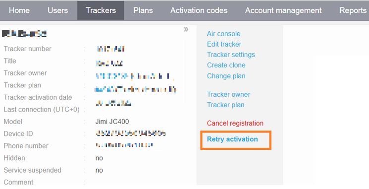 Cuando su dispositivo esté en línea, haga clic en Reintentar activación para proporcionar automáticamente todos los ajustes necesarios