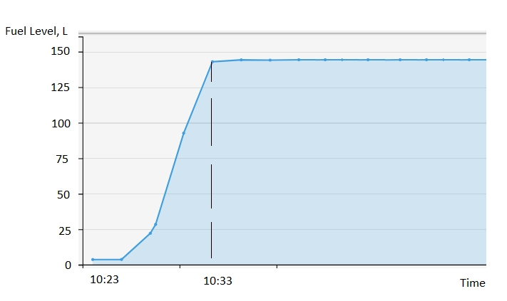 10% from 150 L = 15 L - Accuracy - it is the minimum amount of fuel that can be decreased or filled to the tank before triggering a fuel level change notification. If the fuel level change within a 10-minute period is solely 15L or greater, or if the total fuel level change within that period is equal to or greater than the Accuracy value, the user will receive a notification.