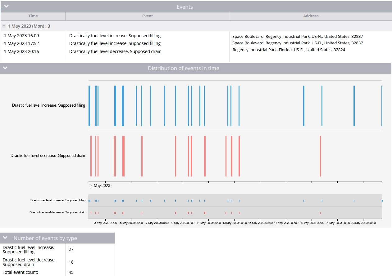 The purpose of this rule is to facilitate real-time monitoring of the fuel level by promptly notifying any significant changes, whether they are decreases or increases. Notifications can be sent via web user interface, SMS, and/or email, and can also be consolidated into reports. By detecting fuel level changes, this feature enables users to remain connected with the tracker and respond more swiftly than relying solely on the fuel level report. Which, of course, can lower fuel costs and resolve labour disputes among employees.
