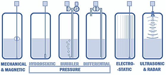For a general-purpose to detect the volume/level of fluid in a particular tank, there is a wide range of available sensing technologies, including mechanical, magnetic, pressure (hydrostatic, bubbler, differential), electrostatic (capacitive, inductive), radar and ultrasonic.