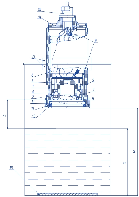 The actual device consists of: 1- body, 2 - holder, 3 - LEDs 3L107B, 4 - compensating photodiodes PD-19КК, 5 - operating photodiode PD20-32К, 6, 7– lenses of a smaller and bigger diameter, 8 - printed-circuit board, 9 – inner nuts, 10 – mounting nuts, 11 - O-ring seal, 12 - safety glass, 13 - nut, 14 - collar, 15 - plug ST1-10-5-V, 16 – mirror.