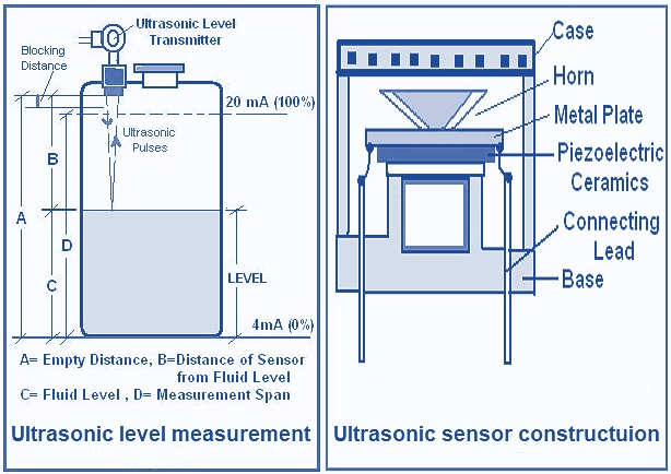 Ultrasonic waves detect an object in the similar way as Radar does. Ultrasonic uses the sound waves, and Radar uses radio waves. When ultrasonic pulse signal is targeted towards an object, it is reflected by the object and echo returns to the sender. The distance to the object is found based on the calculated ultrasonic pulse traveling time. By continuously monitoring the time between the reflected return of the pulses, the actual fluid level can be examined.
