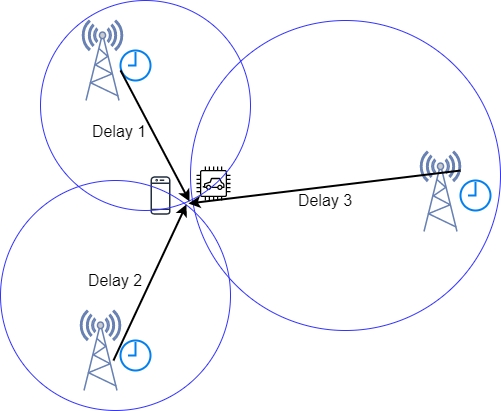 It is based on measuring and comparing time difference of arrival of bursts from nearby base stations. Delays and known placements of base stations can be used to triangulate the GSM module’s location. This search method provides a much better precision even in remote areas ~125 meters but it requires base stations to have Location Measurement Units installed.