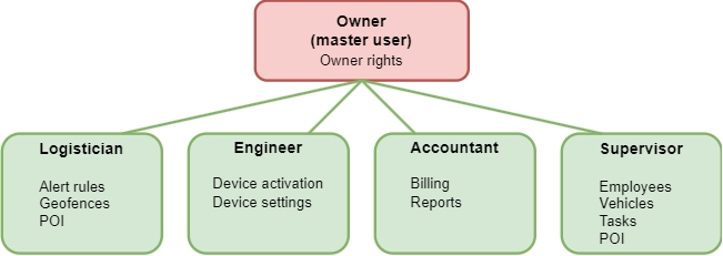 The owner in Navixy is the main account holder with full access and control over the platform. This account has the highest level of permissions and can perform all administrative tasks. The owner has exclusive rights that cannot be transferred to other accounts, ensuring they maintain ultimate control over the account.