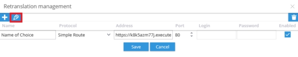 This will open the retranslator management window. Select the row to edit and either click the pencil in the top left or double-click the row in question to allow editing. Save any changes.