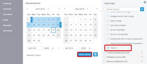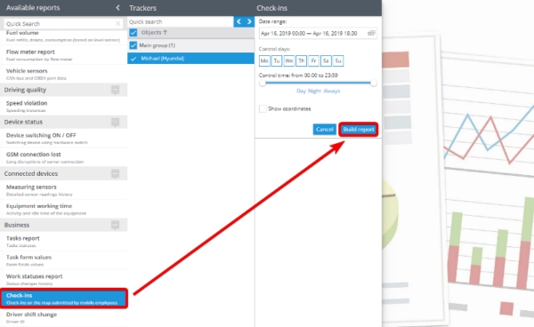 The monitoring service allows you to view the previously sent Check-ins along with a photo and a comment on the map. To view the Check-ins:
