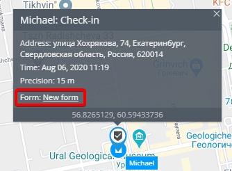 On the map, you will see all the Check-ins for the selected time period. By clicking on them, you can see detailed information: