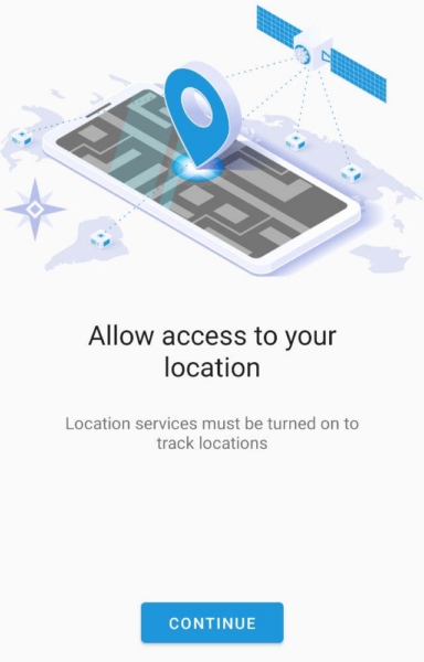 Next, the application will notify you of the need to allow it access to the location of the device. Tap Allow in the pop-up window that appears after tapping Continue.