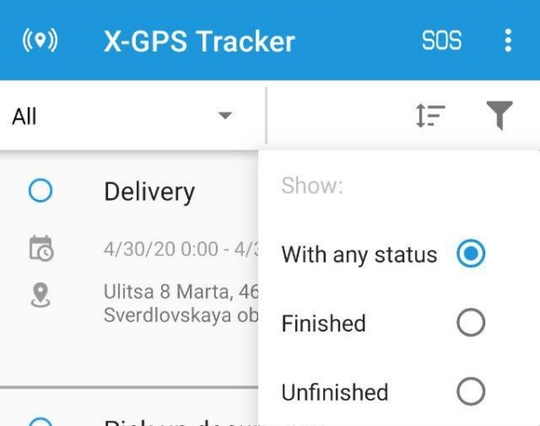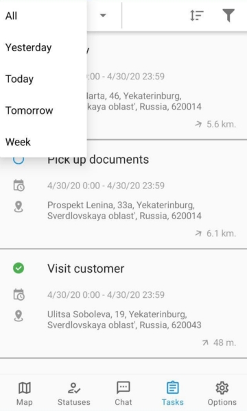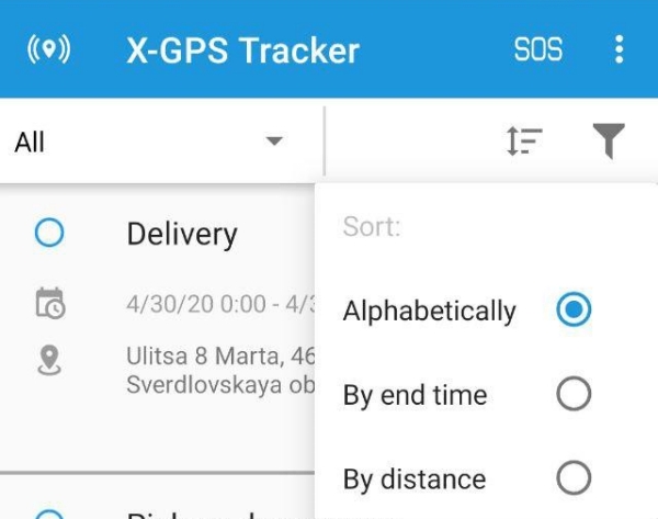 It is also possible to sort the list of tasks alphabetically, by time, or by distance from the performer. You should just choose the desired feature in the settings.