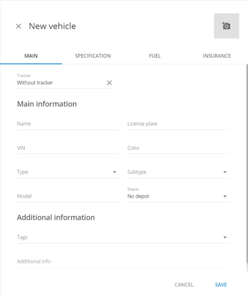 O Principal a guia contém todas as informações principais sobre o veículo e informações adicionais, como tags ou notas de texto.