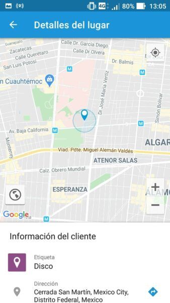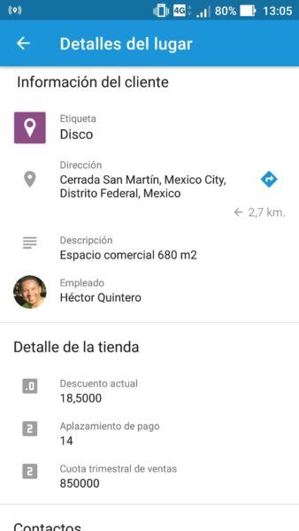 Entendemos que algunos trabajadores móviles prefieren planear sus días laborales de forma autónoma. Por tal motivo, hemos agregado la capacidad de ver la distancia al cliente\lugar más cercano directamente en el smartphone del empleado, así como llamar al número de teléfono del cliente, crear una ruta teniendo en cuenta el tráfico y echar un vistazo al perfil del cliente.