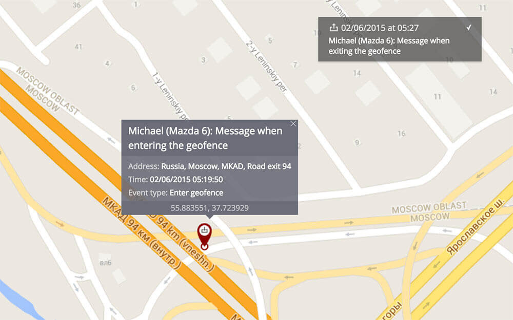 Users can get real-time location of all their assets using satellite (e.g. GPS and GLONASS) and similar (LBS, GSM, WiFi) technologies. Relevant data includes location accuracy, speed and direction, closest address, recent movements and other.