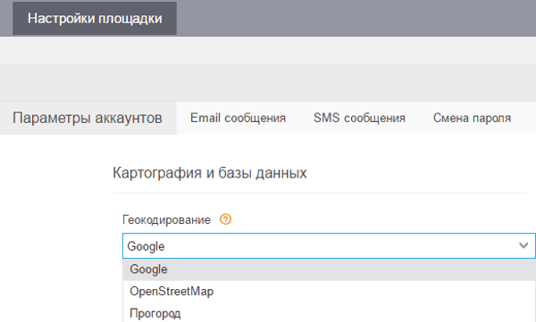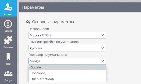 Пользователи также смогут изменить геокодер в разделе Учетная запись.