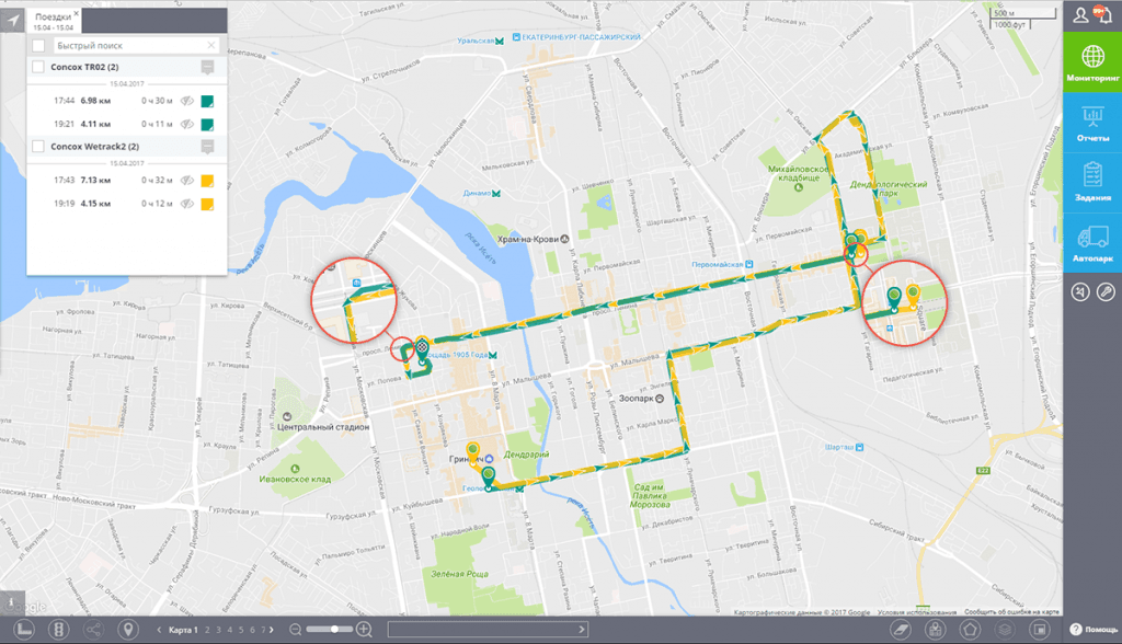 Тестовый заезд проводился одновременно для обеих моделей в городских условиях, настройки трекинга выставили на каждые 30 секунд. Трекеры были подключены к одному источнику питания.